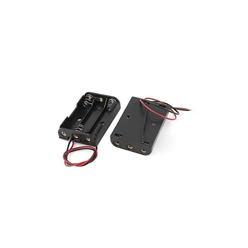 • Caja para 3 pilas AAA, (4,5 V). Para alimentar dispositivos eléctricos o electrónicos y para pruebas en placas protoboard.