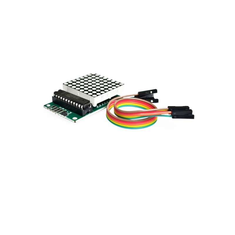 Matriz de 64 píxeles basada en 8x8 LEDs conectados en cátodo común con comunicación serie basada en el chip MAX7219 (multiplexor para 8 dígitos de 7 segmentos o 64 LEDs. Pueden conectarse múltiples módulos en cascada.