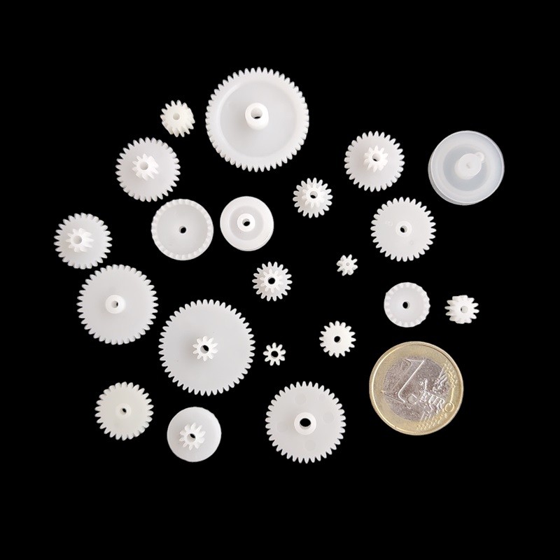 De diferentes Tamaños: Desde pequeños piñones hasta grandes ruedas dentadas Y poleas, para construir mecanismos de transmisión de movimiento precisos.