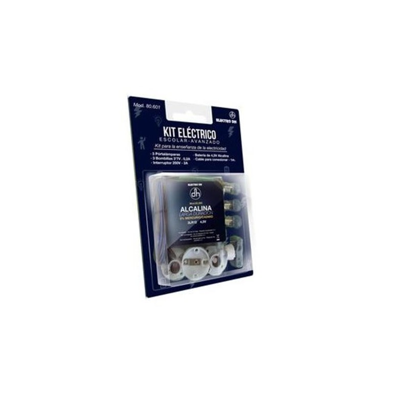 Este kit está realizado para experimentar y enseñar los conocimientos básicos de electricidad a los escolares, podemos realizar un circuito simple con un interruptor y una bombilla. Conexiones fáciles con tornillos. Es recomendable utilizar con la supervisión de un adulto. Contenido: 1 portalámparas 1 batería 4'5 V 1 bombilla 3'7 V - 0'2 A 1 interruptor...