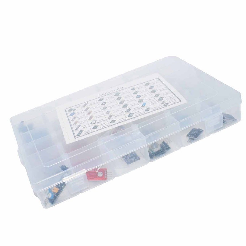 Kit de Sensores y Actuadores Compatibles con Arduino. Este paquete contiene 26 sensores y 11 actuadores compatibles con tarjetas Arduino con los cuales podrás probar el funcionamiento de tu Arduino y explotarlo al máximo.