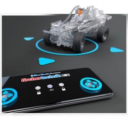 El Control Set permite controlar a distancia los modelos fischertechnik a través de la Bluetooth Control App con un teléfono inteligente o una tableta. La tecnología Bluetooth-Low-Energy garantiza un gran alcance de hasta 10 m. El receptor tiene tres salidas de motor y una salida de servo, lo que permite un ángulo de dirección continuo y un control de velocidad continuo. El set incluye un servo. El mando a distancia permite controlar hasta dos receptores, lo que supone una gran cantidad de posibilidades de uso. La tecnología Bluetooth hace posible utilizar varios Control Sets en una misma habitación sin que interfieran entre sí.