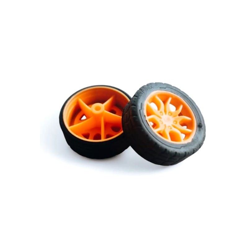 Rueda  TT de llanta de plástico y neumático de goma para motor reductor de doble eje DC 3V 5V 6V, para coche inteligente robot DIY Smart (Robot de coche), o cualquier proyecto de robótica que necesite  motor y ruedas estables. Esta rueda se utiliza en diferentes proyecto de robótica móvil en donde se utilicen los motores TT con caja reductora de plástico...