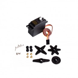 Destaca por su gran torque, engranajes metálicos y gran robustez. Funciona con la mayoría de tarjetas electrónicas con microcontroladores y además con la mayoría de los sistemas de radio control comercial. Es utilizado principalmente en proyectos de robótica y modelismo de mediano tamaño.Se puede considerar de torque medio-bajo dependiendo del voltaje que...