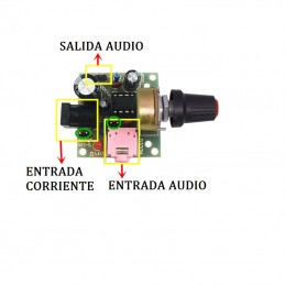 Este mini-amplificador tiene como componente principal al circuito integrado LM386. Con este IC se puede lograr una ganancia de 20 con una potencia que puede estar entre 0,3 y 0,8W.