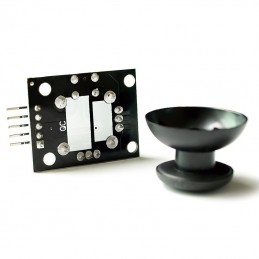 Este módulo consta de dos potenciómetros de 10kΩ colocados perpendicularmente para controlar los ejes X e Y cambiando la resistencia con el movimiento del joystick. Un botón pulsador se activa cuando el joystick se empuja hacia abajo en el eje Z. Tiene 5 pines.
