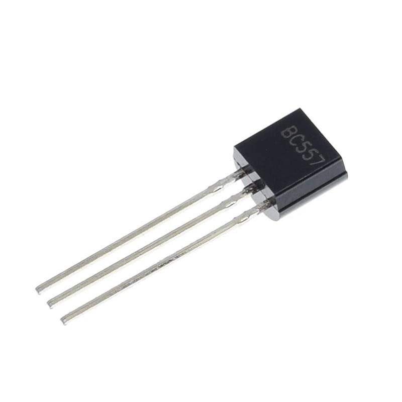 El BC557B es un transistor de unión bipolar (BJT) PNP (positivo-negativo-positivo) de uso general que se usa comúnmente en circuitos electrónicos para diversas aplicaciones, incluidas amplificación, conmutación y procesamiento de señales.